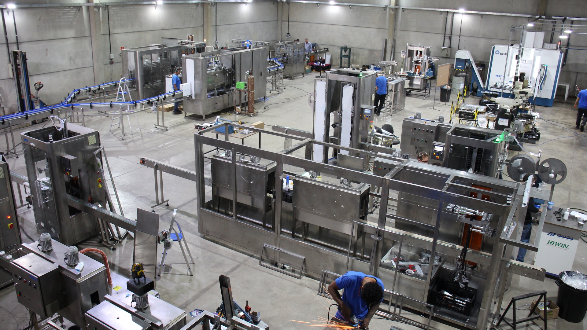 Envasadora, tampadora, datador, esteiras e túnel devem trabalhar em perfeita sincronia para manter o fluxo contínuo.